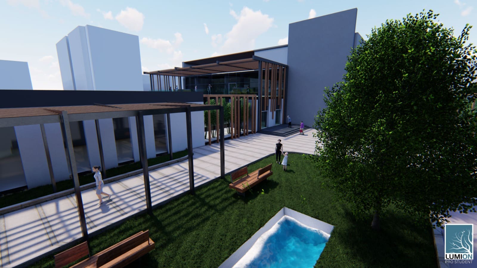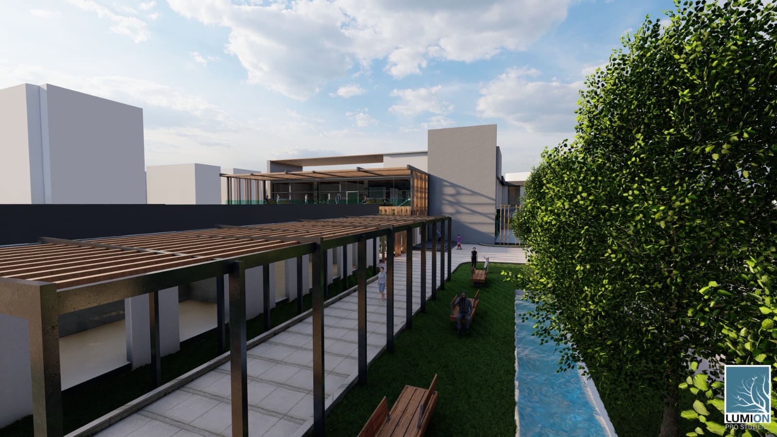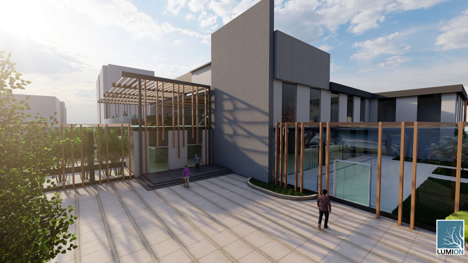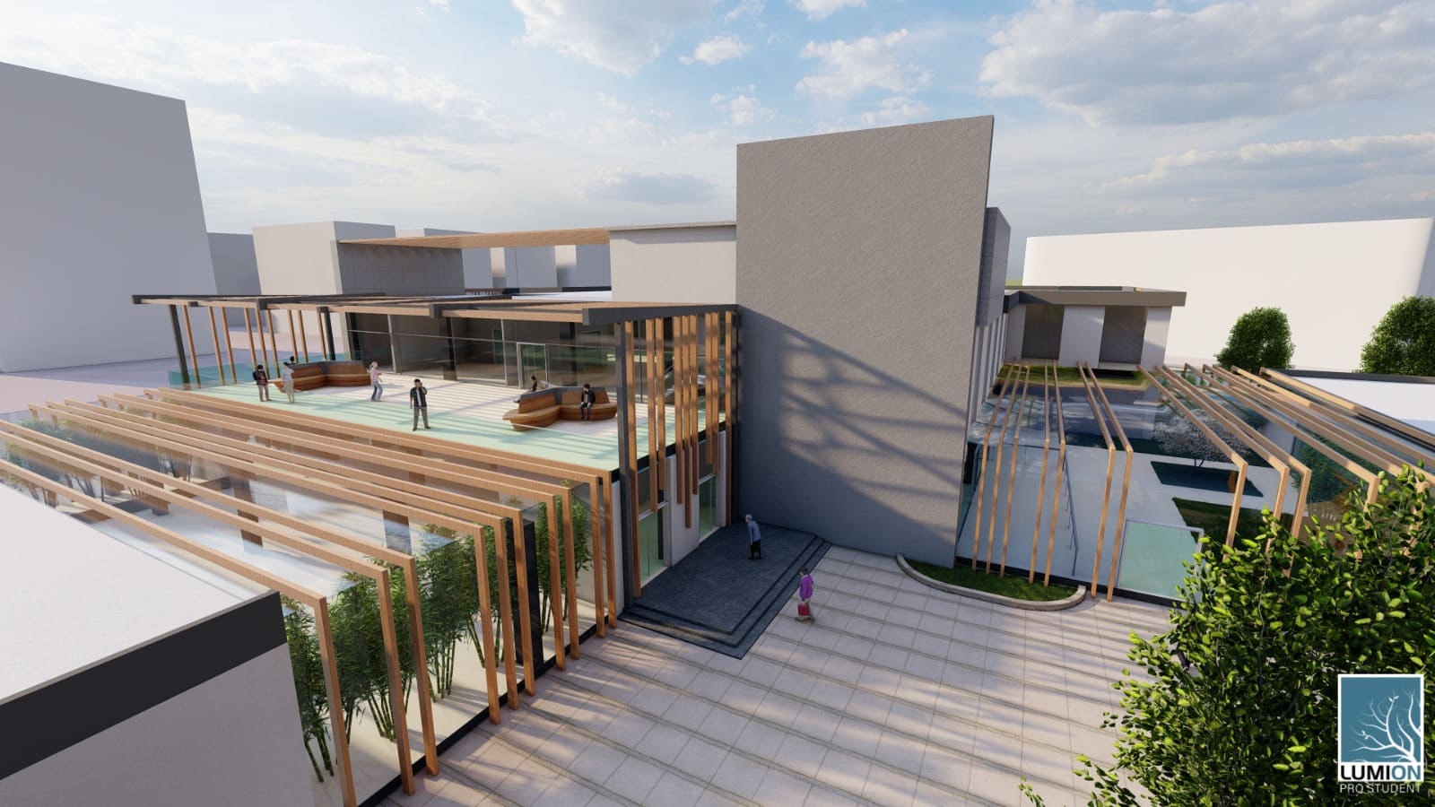 Dış cephesinde ahşap strüktürler ve kompozit cephe kaplama elemanları tercih edilmiştir.