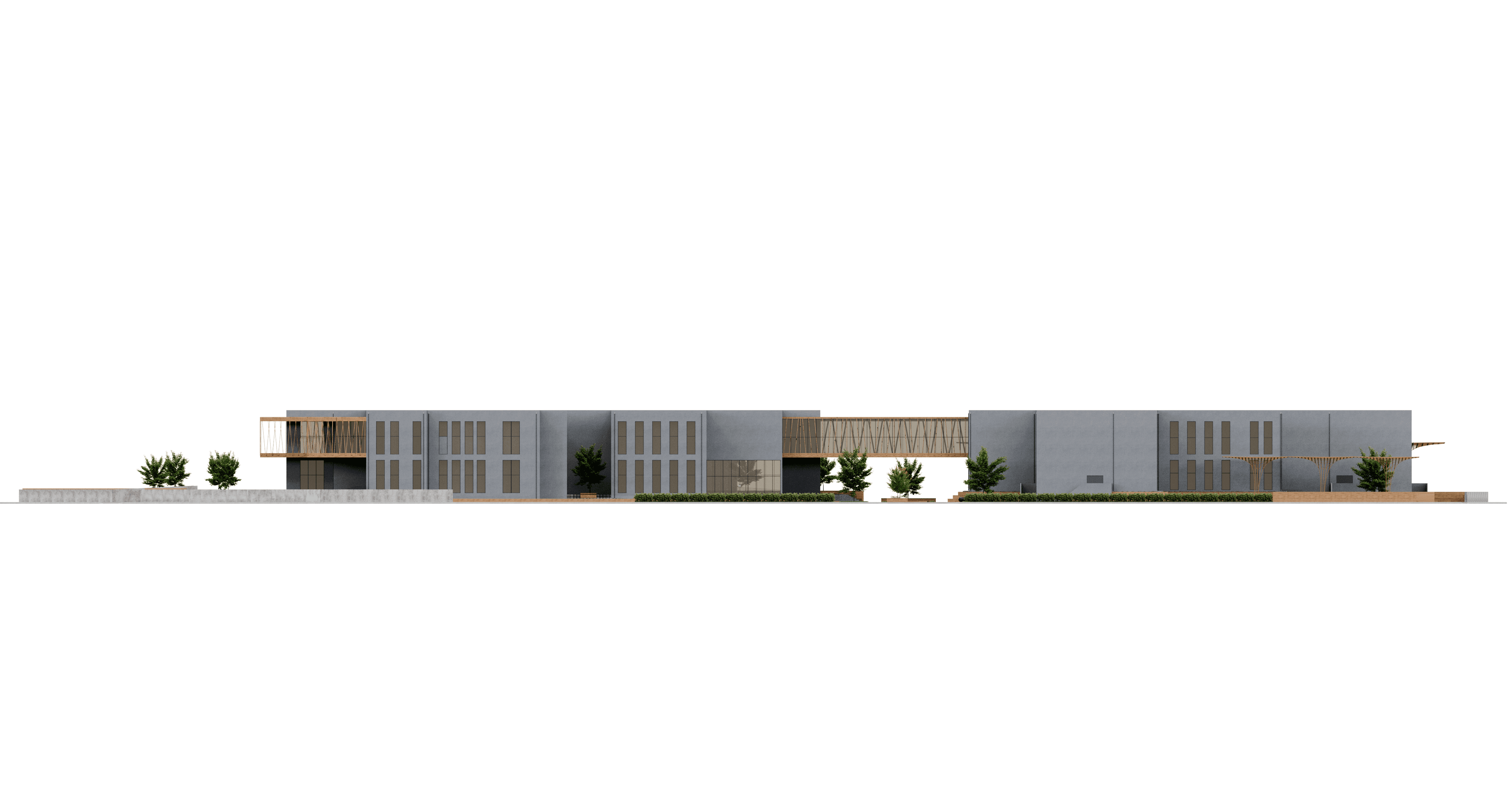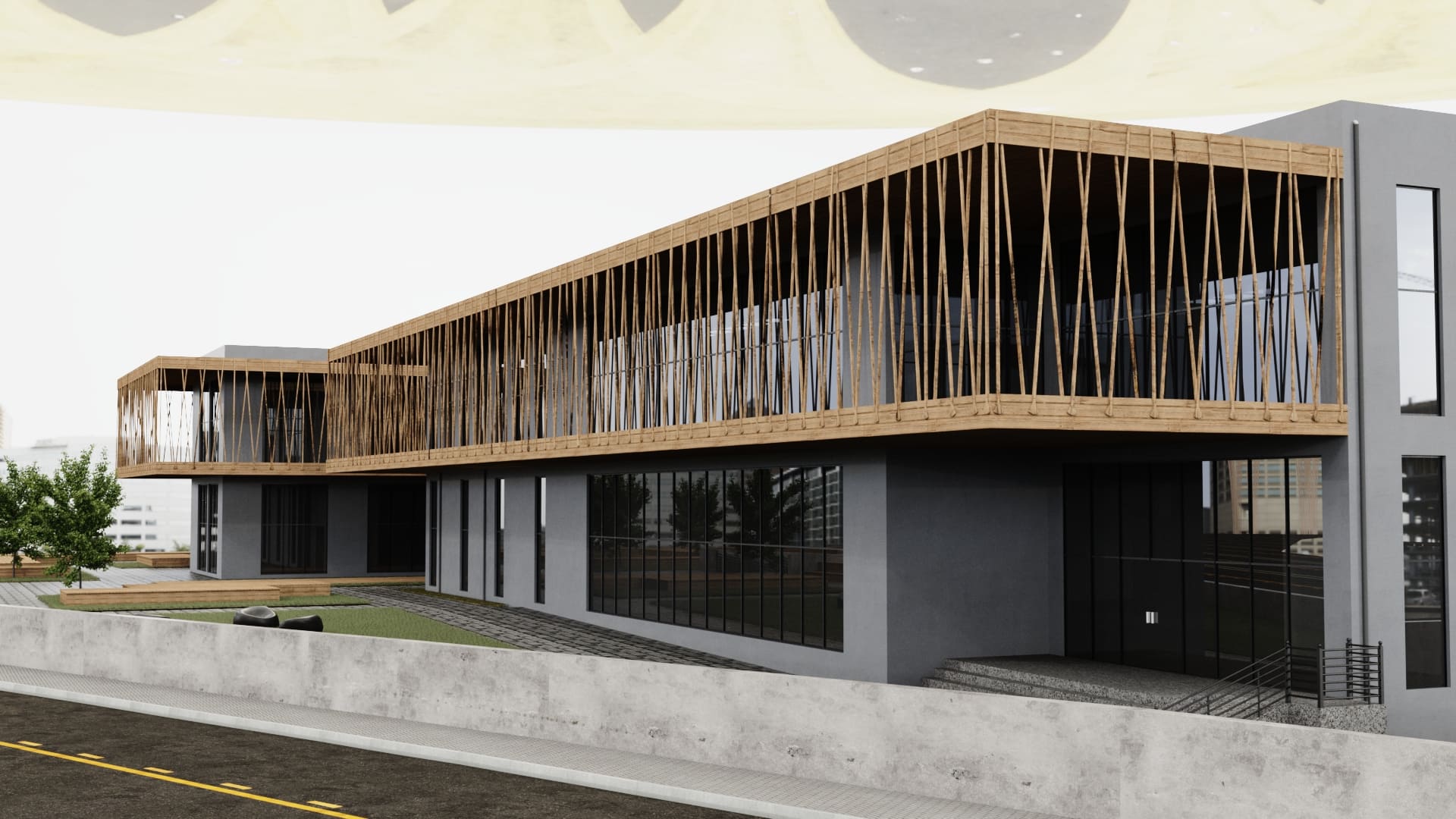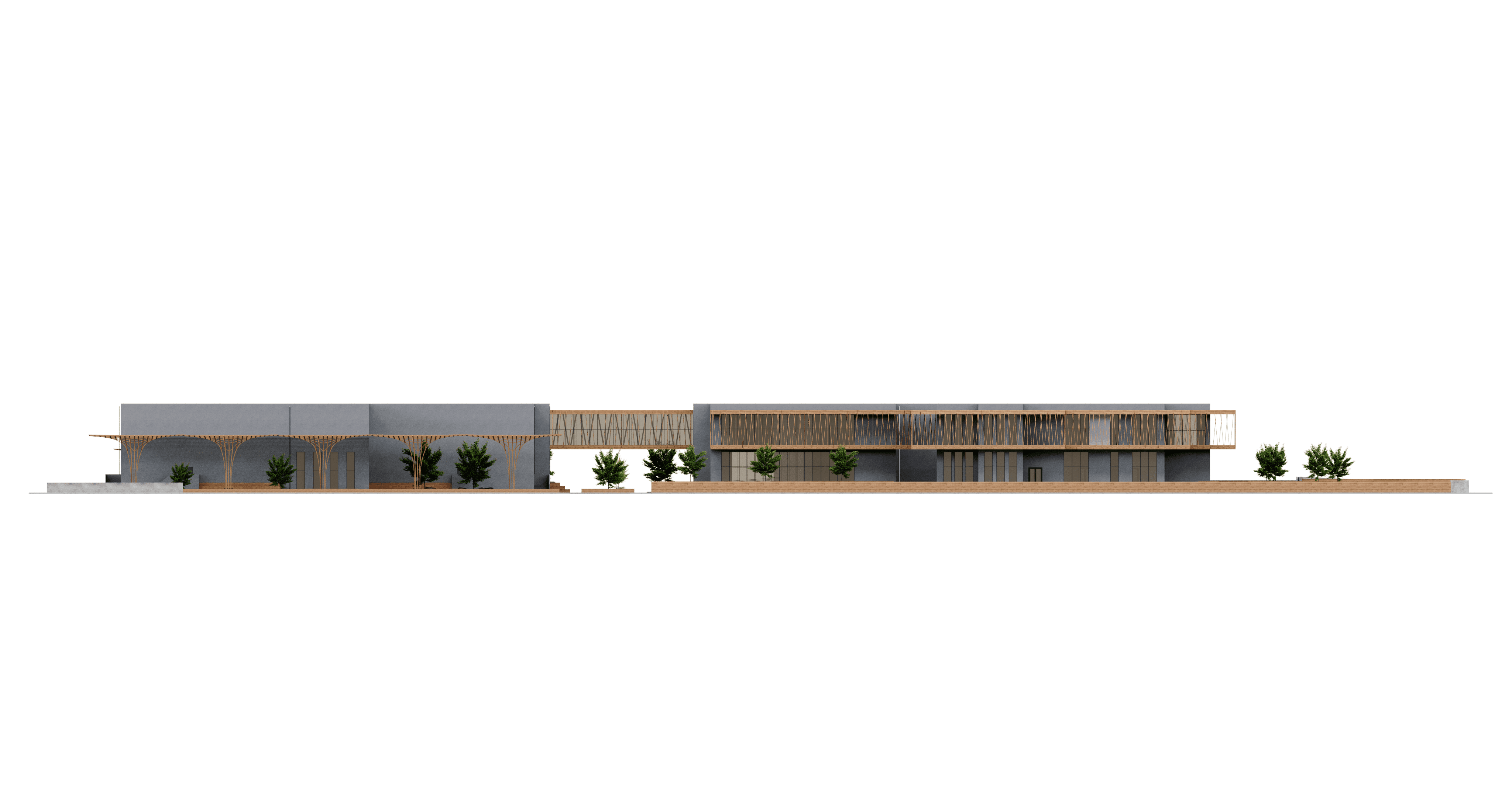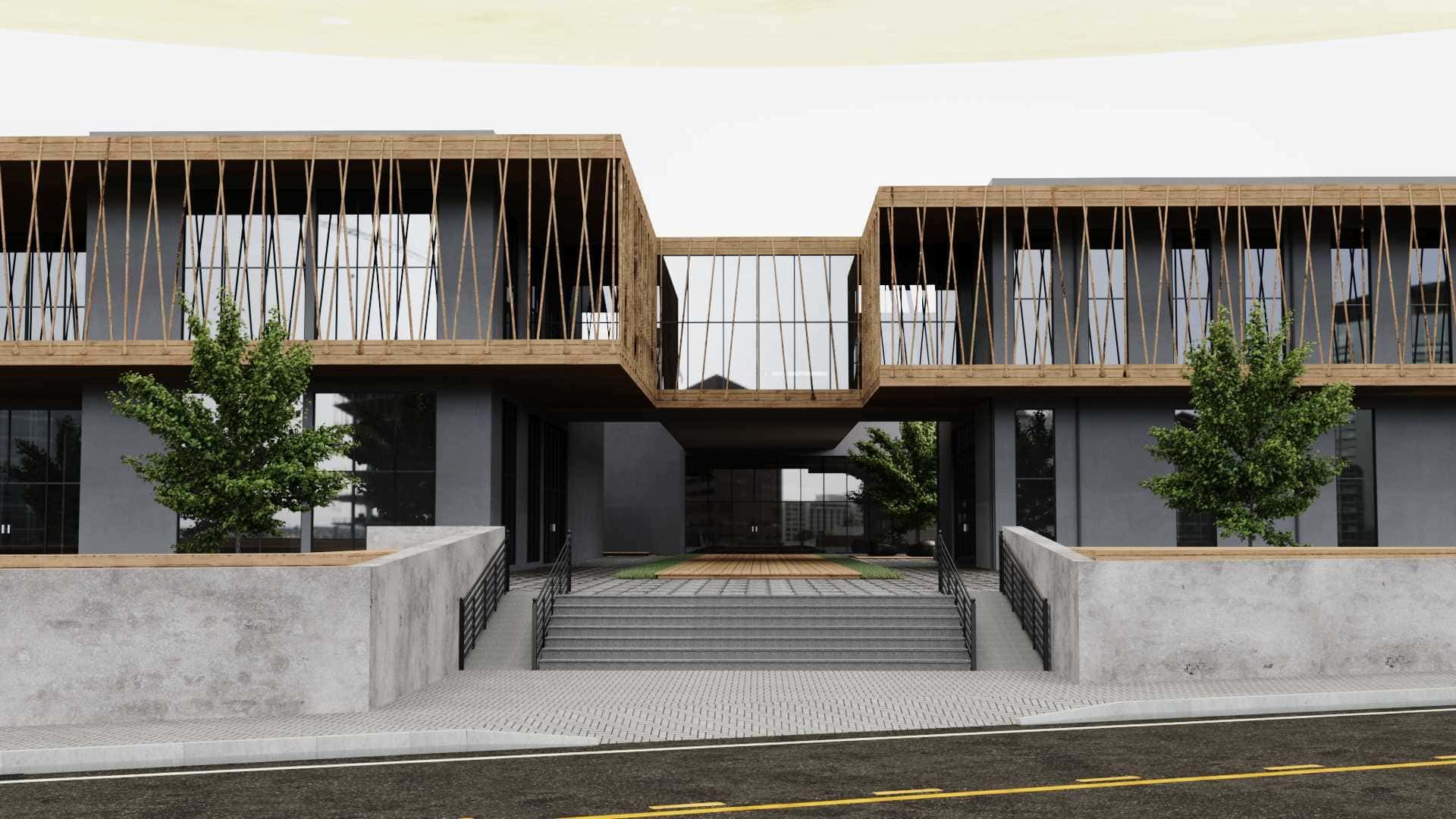 Dış cephesinde ahşap strüktürler ve kompozit cephe kaplama elemanları tercih edilmiştir.