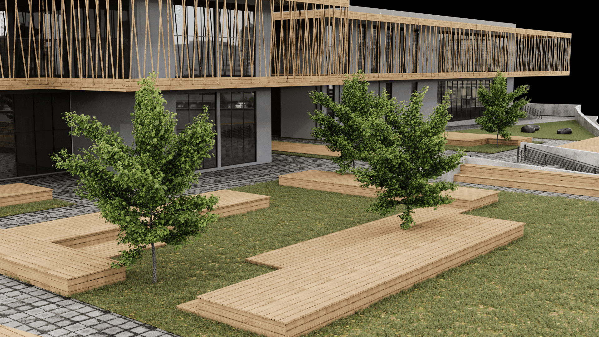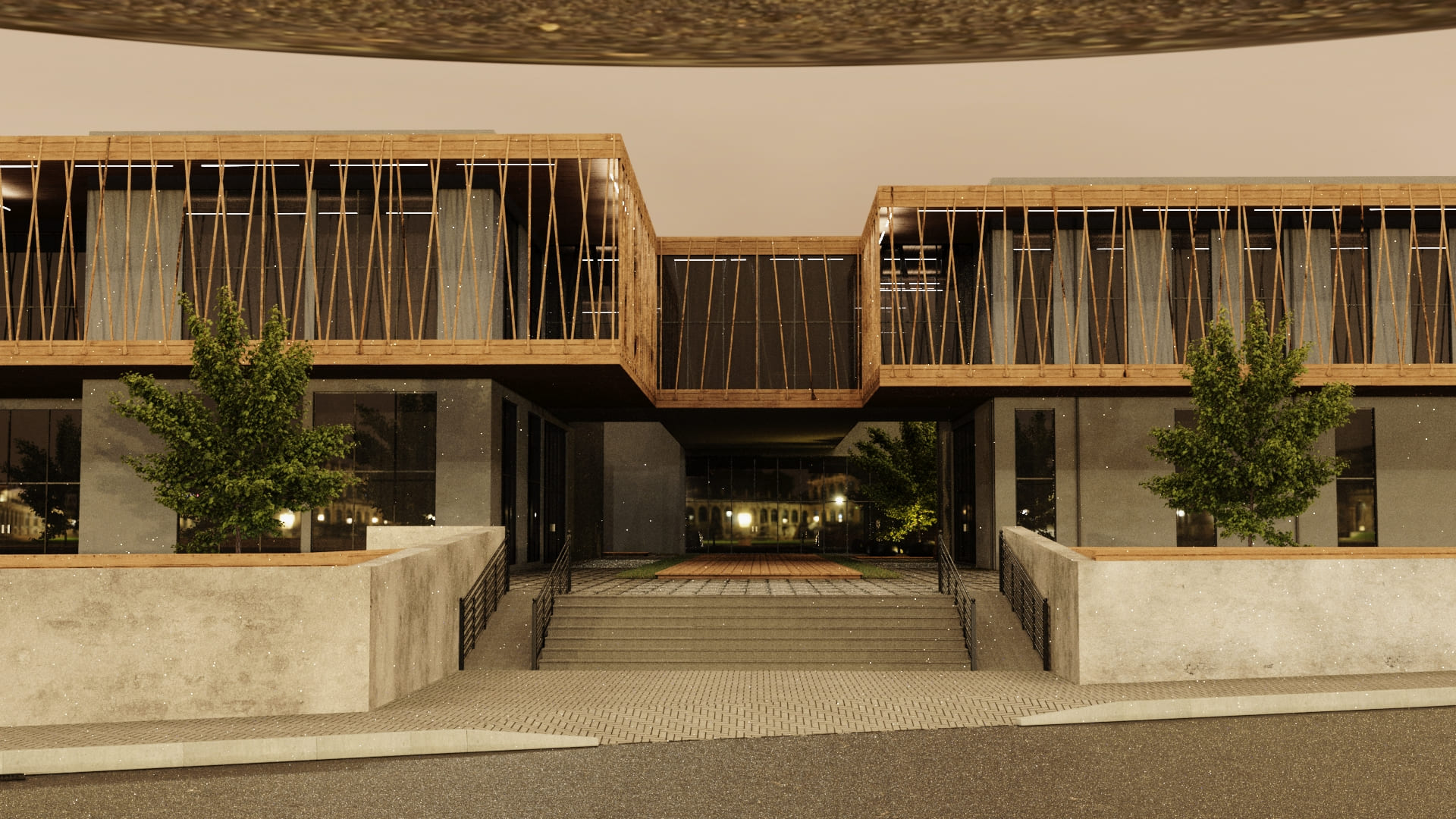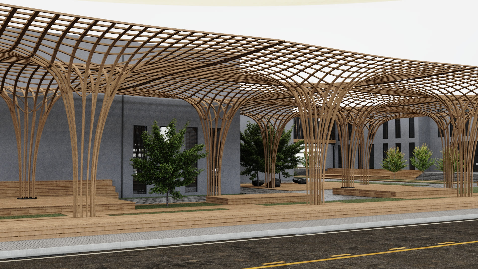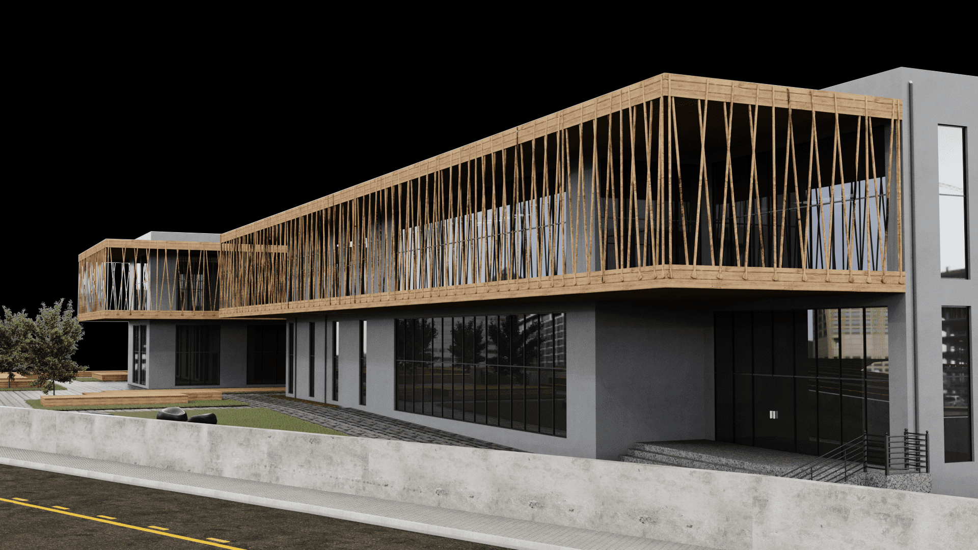 Dış cephesinde ahşap strüktürler ve kompozit cephe kaplama elemanları tercih edilmiştir.
