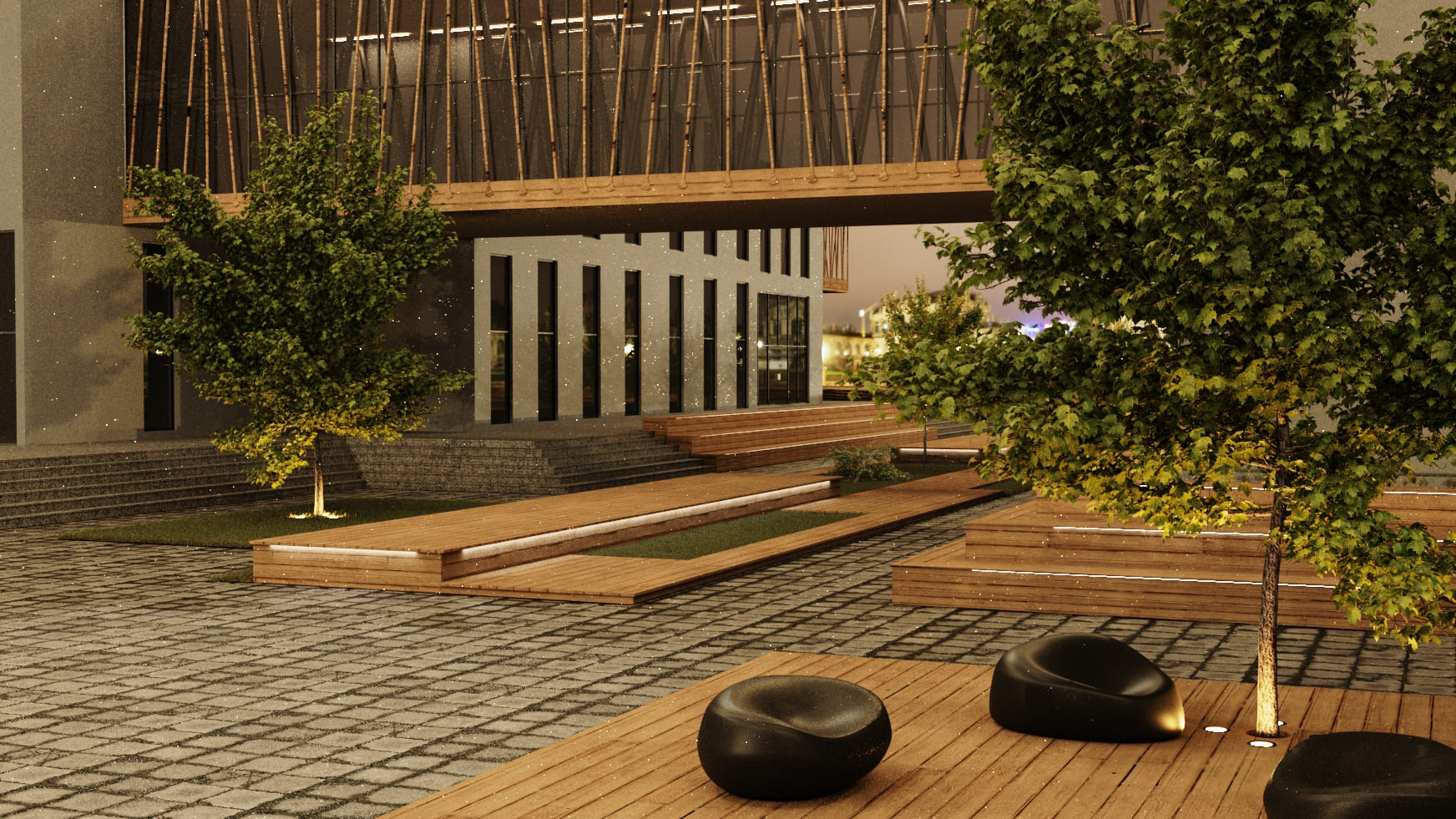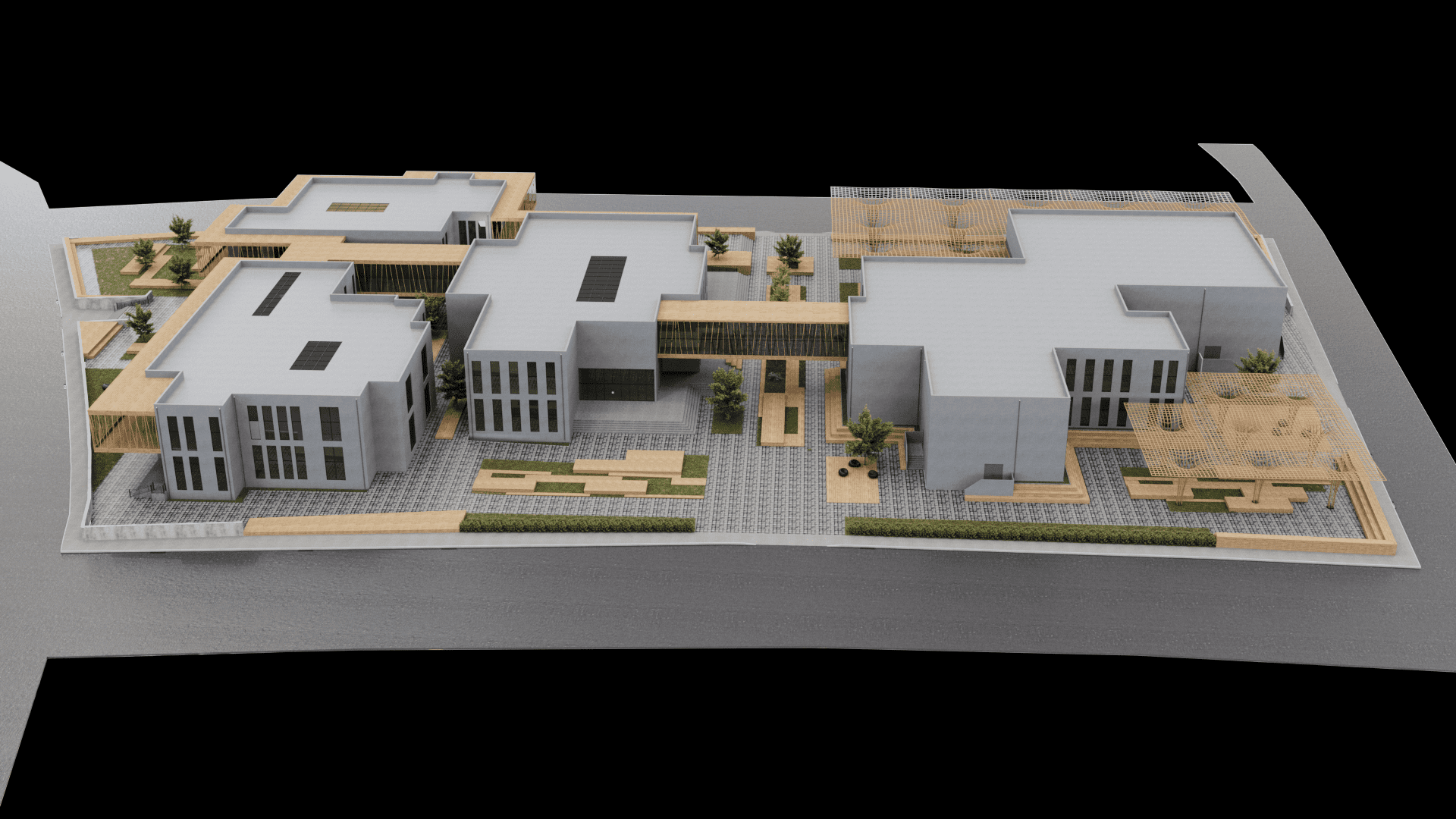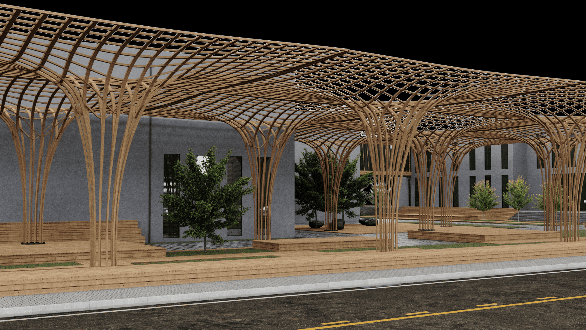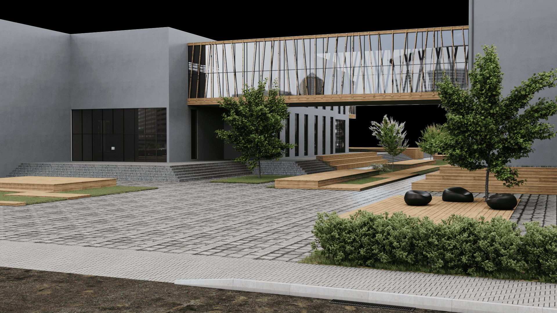 Dış cephesinde ahşap strüktürler ve kompozit cephe kaplama elemanları tercih edilmiştir.